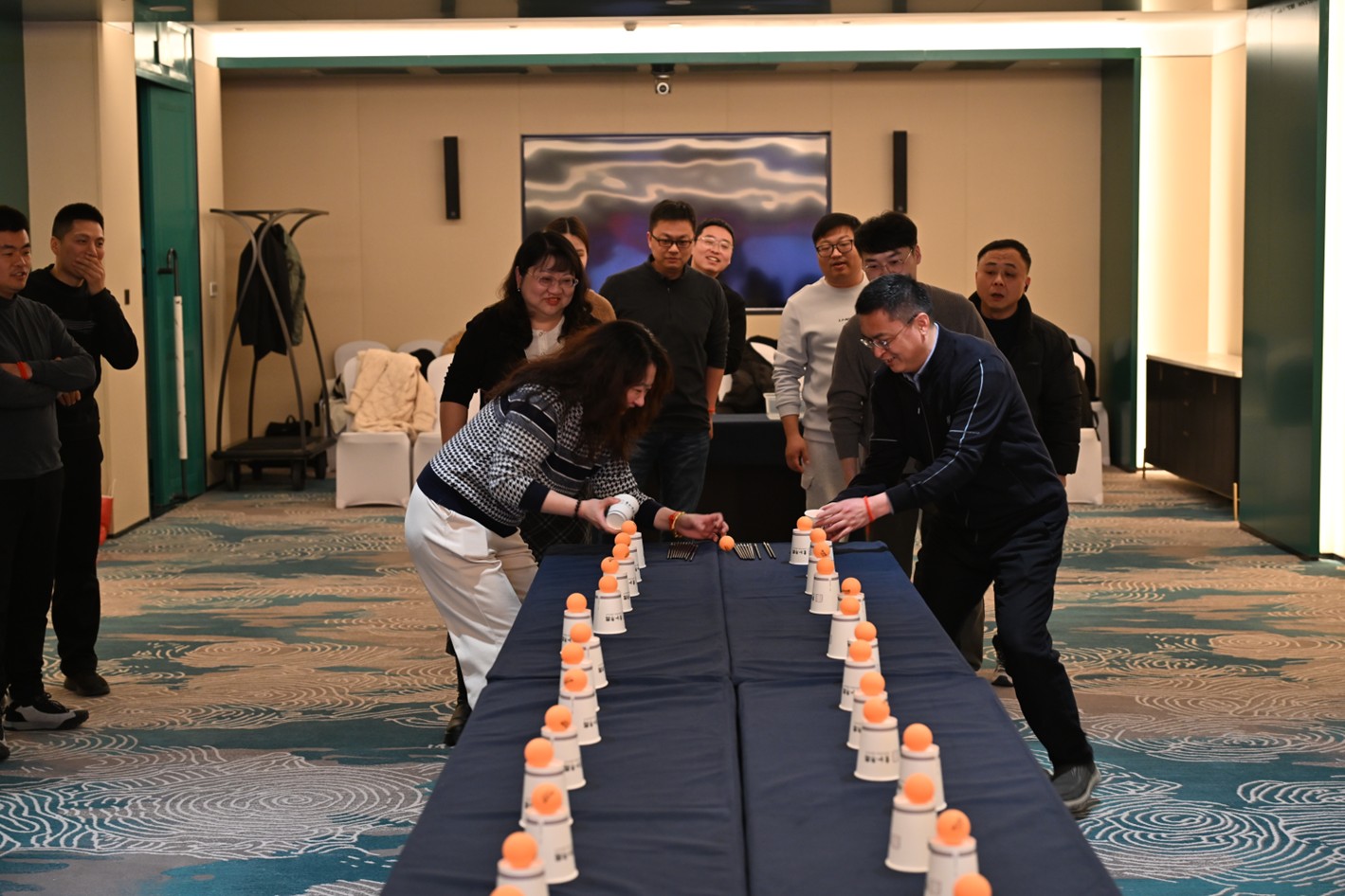 祈福活动结束后全体人员来到南京明宇酒店,继续开展迎新会活动,活动将传统祈福文化与现代企业管理理念相结合,通过仪式感增强员工归属感。从高层领导到基层员工,均以平等身份参与祈福,体现“以人为本”的企业文化。